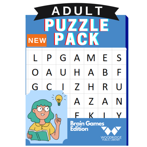 A new puzzle pack edition will be available each month at the Circulation Desk in the Lobby on the dates listed: