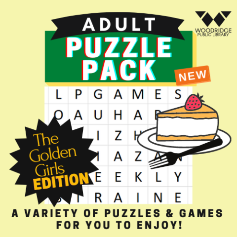 A new puzzle pack edition will be available each month at the Circulation Desk in the Lobby on the dates listed: March 9 - 15 Spring Edition, April 6 - 12 Golden Girls Edition, and May 11 - 17 Food Edition.