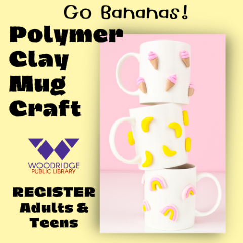 Mold bright clay into easy-to-make shapes--bananas, ice cream cones, or rainbows--to create a fun and fabulous mug. Make clay shapes at the library, and finish by baking your mug at home. We have all the supplies, samples, and tips needed for your success!