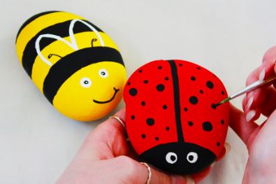 Transform a rock into a colorful ladybug or a bumblebee customized by you during this rock painting activity.
