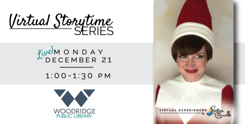 Join Scout the Elf for a live storytime on December 21. This holiday event is full of caroling, magical stories from the North Pole, and reindeer games--Plus, the character will respond to your child's comments by name! TO JOIN IN: 1) If you haven't already, visit www.facebook.com/groups/WoodridgeStorytime now and request to be added to the exclusive event group. Must join BEFORE 12/21 to participate Live.2) Visit our group again on 12/21 right at 1:00pm for the next Virtual Live Storytime! The recordings of each event in this special Monday series will remain up on this group, so please join the group even if you can't participate live!Sleeping Beauty on October 12 at 7 p.m.Pirate Treasure Hunt on November 23 at 1 p.m.Elf Storytime on December 21 at 1 p.m.