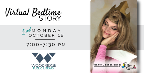 Join us for a Virtual Live Storytime with a wonderful princess. Cuddle up and enjoy a Live Storytime with Sleeping Beauty that's full of singing, engaging storytelling, and games--Plus, the character will respond to your child's comments by name! TO JOIN IN: 1) If you haven't already, visit www.facebook.com/groups/WoodridgeStorytime now and request to be added to the exclusive event group. Must join BEFORE 10/12 to participate Live.2) Visit our group again on 10/12 right at 7:00pm for this Virtual Live Bedtime Story! The recordings of each event in this special Monday series will remain up on this group, so please join the group even if you can't participate live!Sleeping Beauty on October 12 at 7 p.m.Pirate Treasure Hunt on November 23 at 1 p.m.Elf Storytime on December 21 at 1 p.m.
