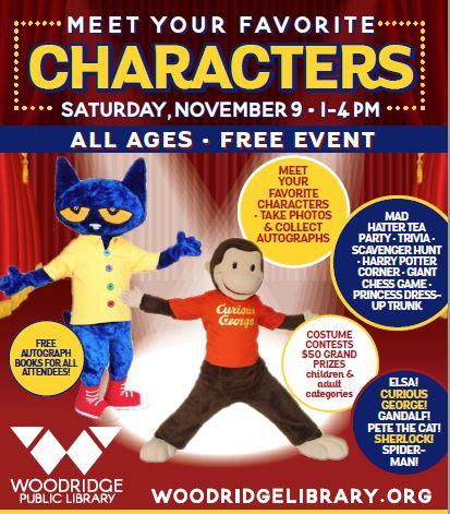 Meet Pete the Cat, Sherlock Holmes, Snow Queen, Gandalf, Curious George and Spider Hero! Enjoy the Mad Hatter Tea Party, a giant Chess Game, and other fun activities . Don't miss: face-painting, Sherlock Holmes trivia contest and costume contest for all ages. $50 gift card grand prizes will be awarded in both a children's and an adult costume category. All attendees will receive a free autograph book, while supplies last.