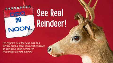This live program is over, but you can watch the recording on the library's YouTube channel. You'll be able to meet Sven and Ana, two reindeer that live in Illinois and hear about the characteristics that reindeer and birds share, and other facts about what reindeer like to eat and where wild reindeer live.