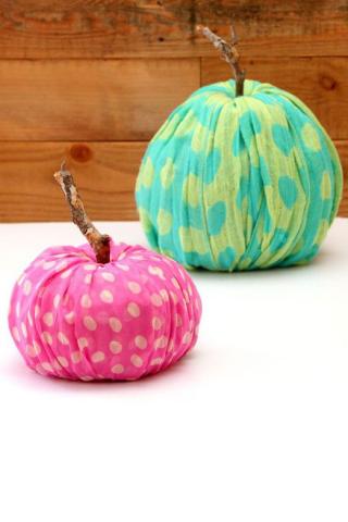The secret to this project is...toilet paper! Pick up a Patterned Fabric Pumpkin Design Kit with the fabric (designs vary), stem, and directions to create a fantastic fall decoration. Use your own roll of toilet paper and an old towel to create the center of this design. Fabric patterns vary.