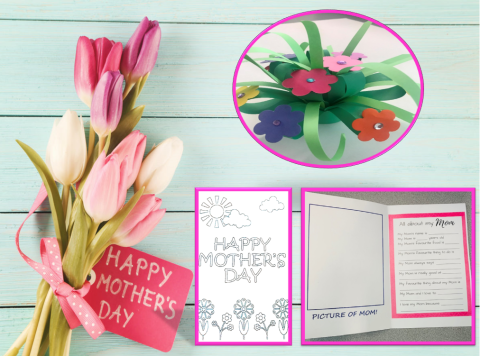 Starting May 3rd stop by the library to get a "Mother's Day Card & Paper Flower Bouquet" Take & Make craft to take home, or ask for it on the Kid Book Bundle request form.