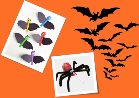 Starting on October 4 stop by the Circulation Desk in the lobby of the library to get a "Spider Pop & Bat Craft" craft to take home, or ask for it on the Kid Book Bundle request form.