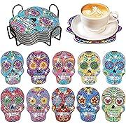 Create a skull-shaped diamond painting coaster, listen to haunting music, and have some spooky snacks.