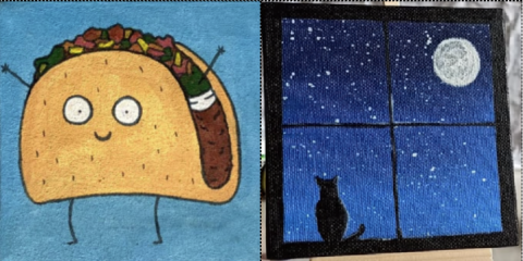 Practice your painting skills on a tiny canvas and create a mini-masterpiece. We will paint a pretty night sky or fun and yummy taco. You choose!
