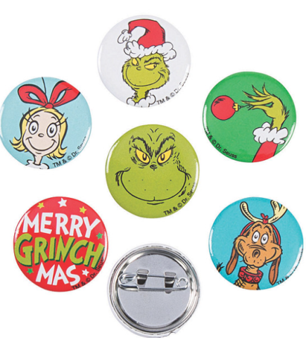 Kit includes grinch pin-back button, grinch coloring, DIY gift tags and notes, and treats that might make your heart grow 3 times its size...find out - pick up your kit in the lobby.