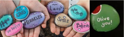 Get a take-home kit to make your Kindness Rock. Use an inspirational or pun-y saying. Kits contain: awesome smooth rocks, marker, paint, brush, directions and puns!