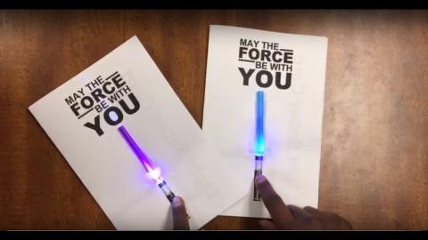Powerup a Star Wars light saber or firefly with our paper circuit card kit: contains LED light, coin cell battery, copper tape and circuit map so you can make one or both designs.