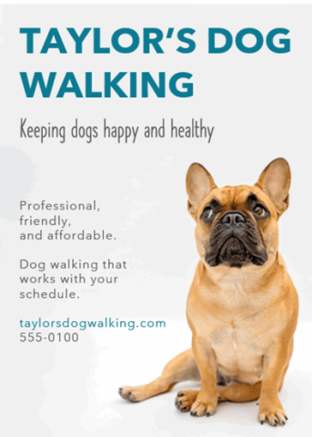 Technical note: if you email your designs or photos to yourself or bring them in on a flash drive you can incorporate your own images into the flyer.