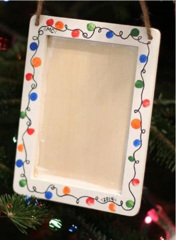 Your toddler will have fun creating a beautiful picture frame that can be given as a gift this holiday season!
