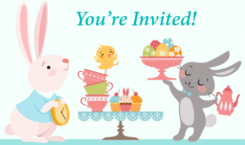 You're invited to a Virtual Bunny Tea Party & Storytime on Saturday, March 20 at 11 a.m., featuring our Star Guest, the Easter Bunny along with the White Rabbit. Hosted by Alice; the Queen of Hearts is NOT invited.